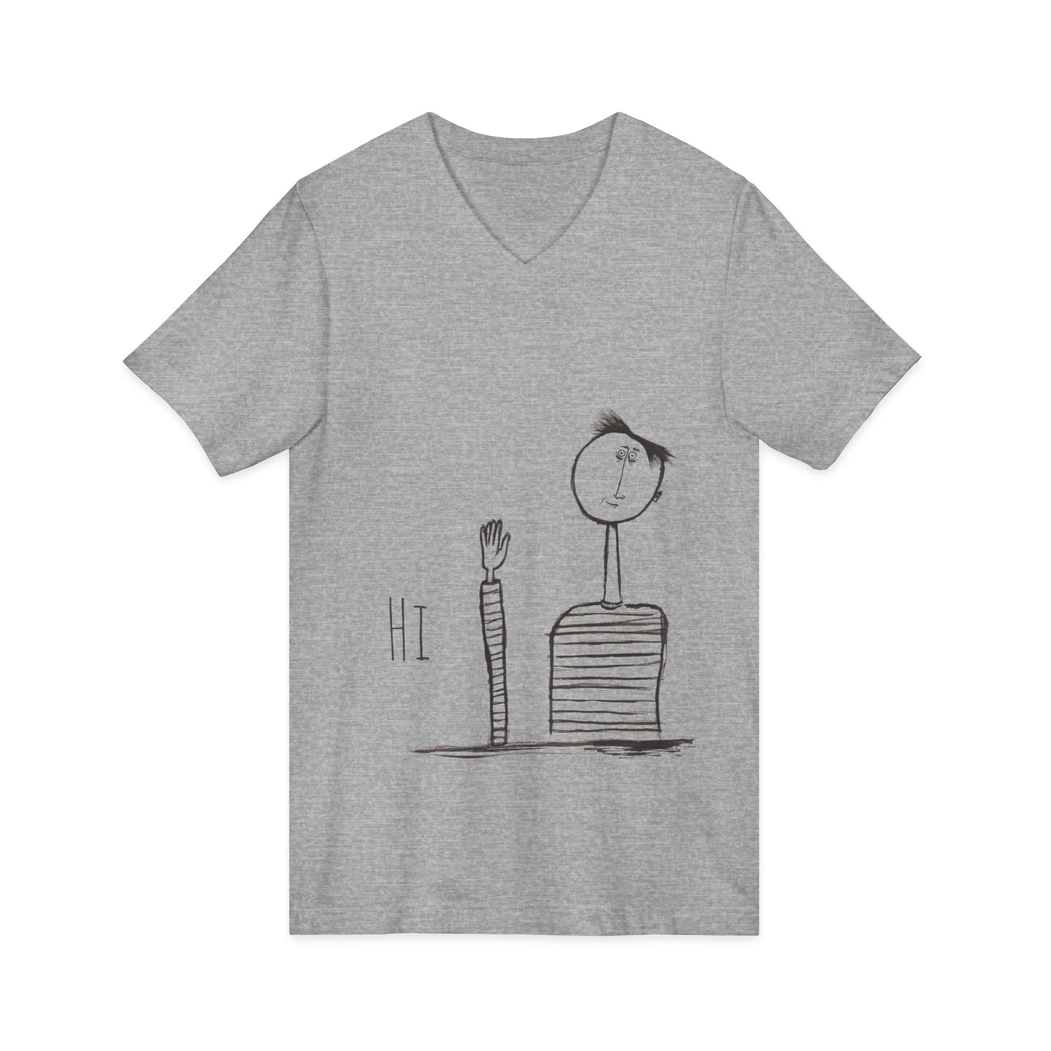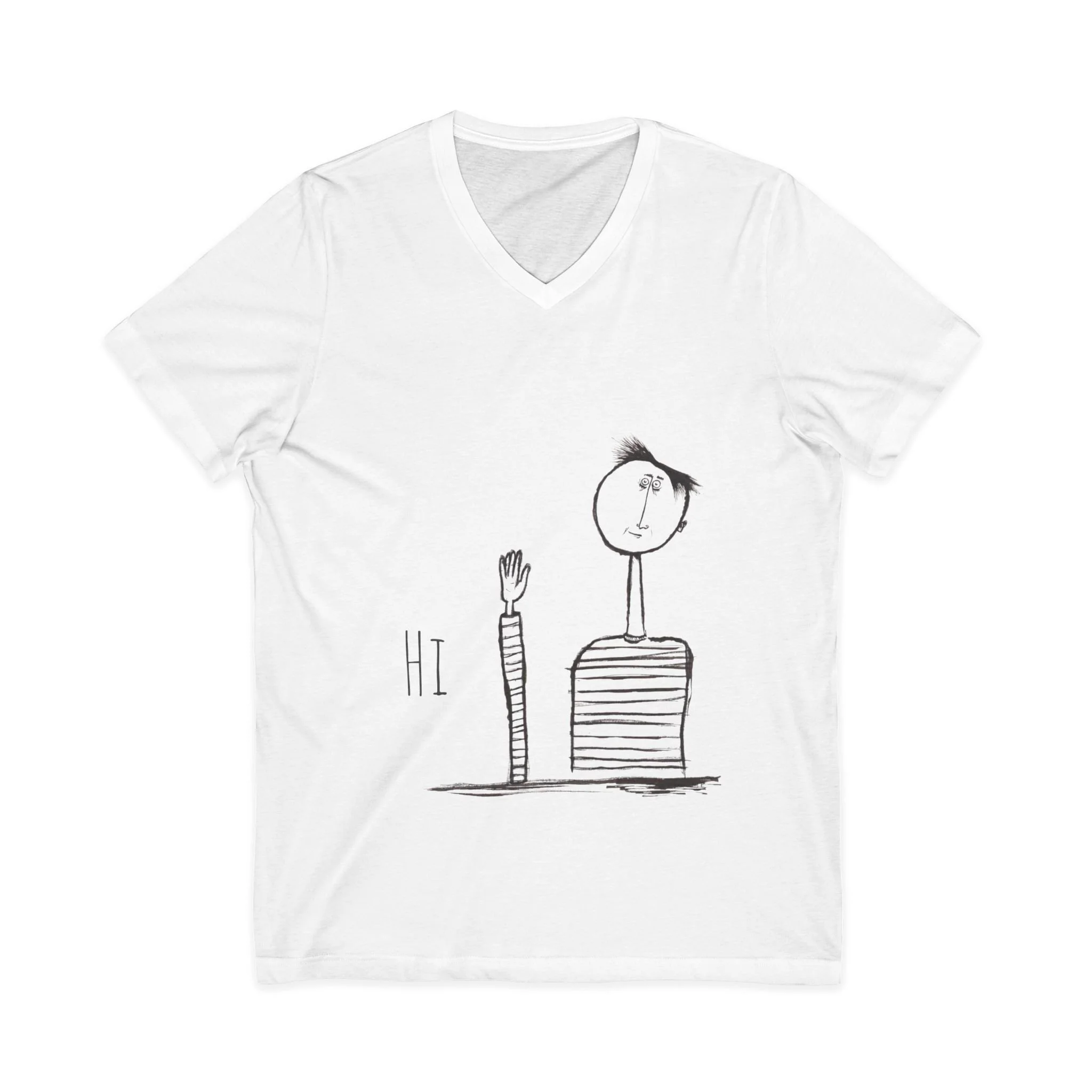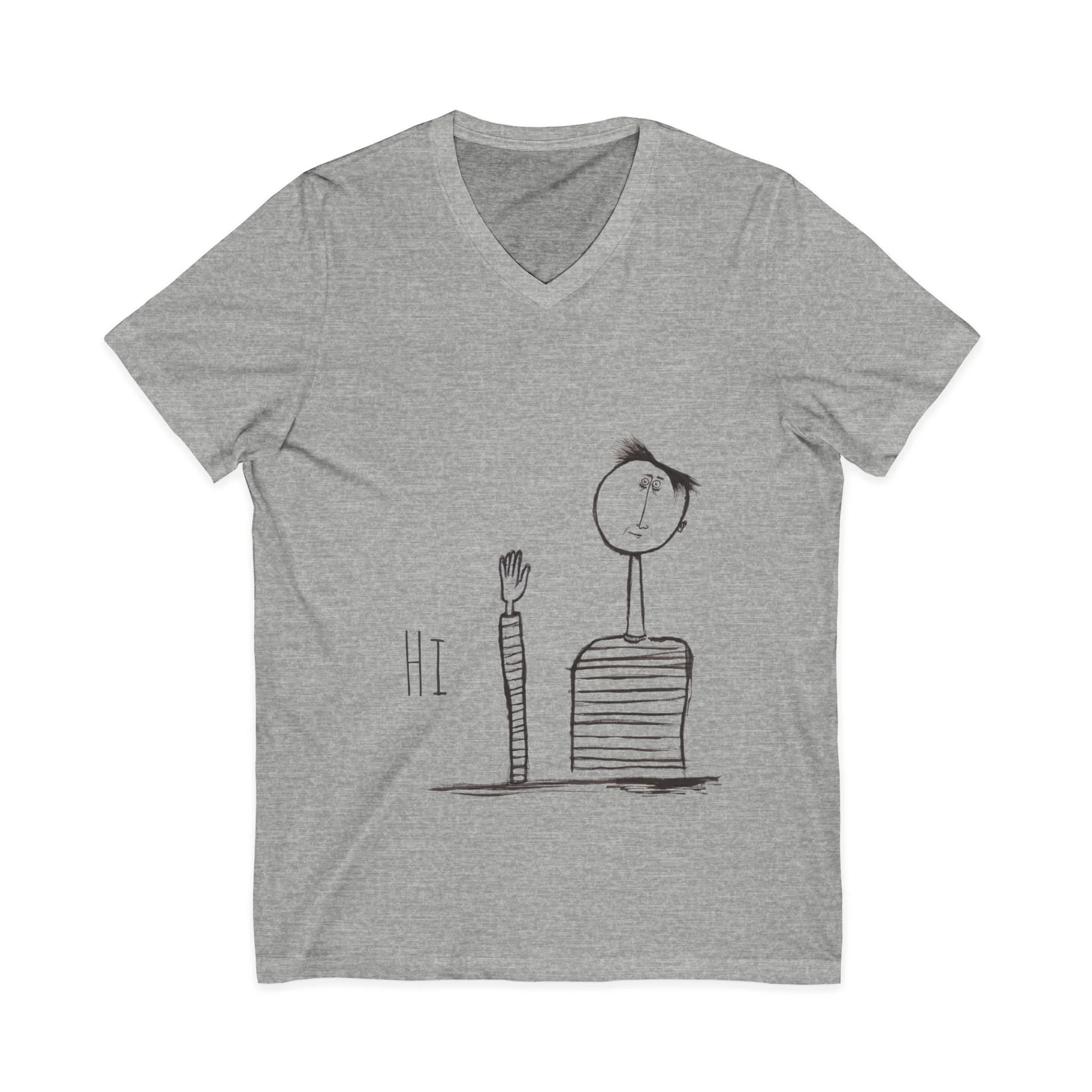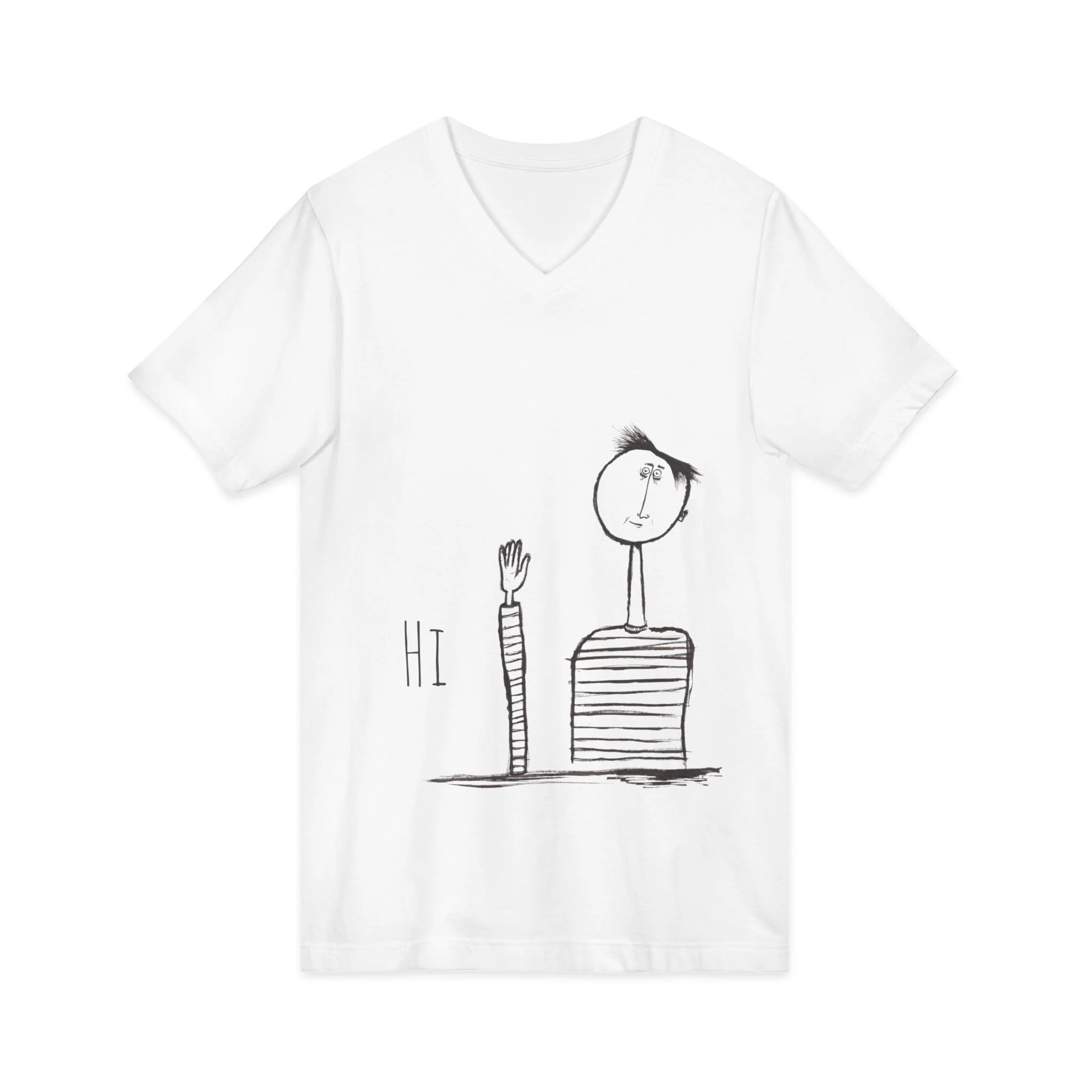 Hi Wave V-Neck Tee — Minimalist Hand-Drawn Greeting Shirt